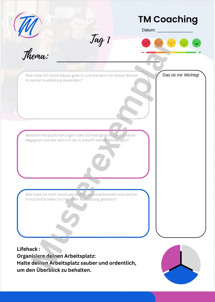 Das Coaching gliedert sich in drei Themenblöcke und je vier Methodentrainings. Die Teilnehmer erhalten je Monat ein persönliches Erfolgsjournal zu Reflexion.